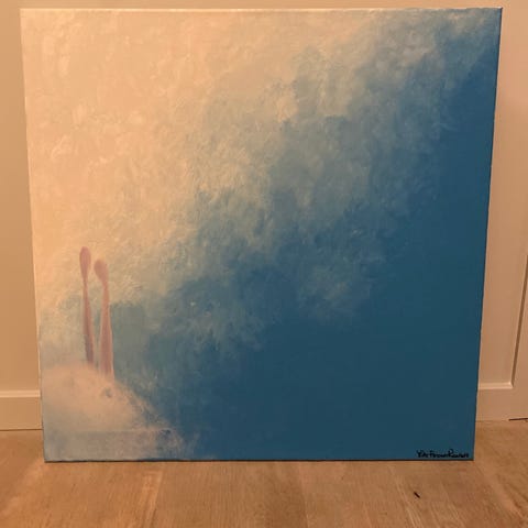 Hjemmelaget bilde med sparkel på lerret selges. Må hentes.