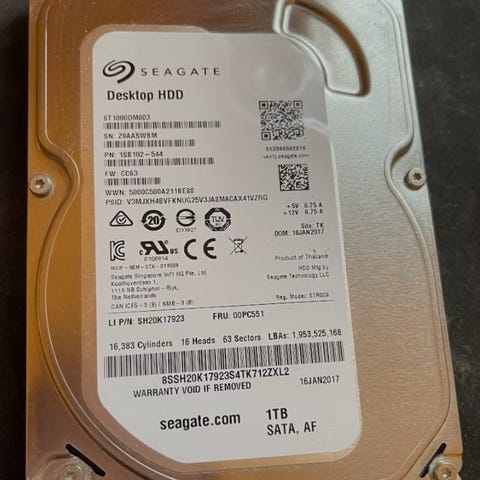 Seagate Desktop HDD harddisk med lagringskapasitet på 3 TB (3000 GB). 3,5-tommers intern harddisk beregnet for stasjonære PC-er. Egnet som lagringsdisk eller erstatning i en stasjonær datamaskin eller ekstern kabinettløsning som støtter 3,5" SATA-harddisker.