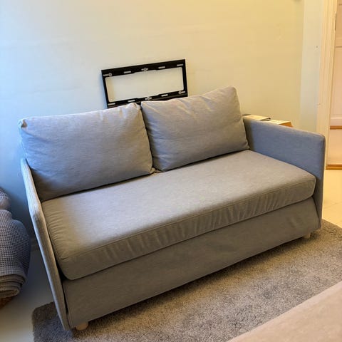 Sovesofa fra IKEA med veldig praktisk oppbevaring under setet. Sofaen er pent brukt, ingen skader eller merker. Fremstår som ny. Modellen er lik Älvdalen, bare med mindre puter. Se mål på bilde nr.4.