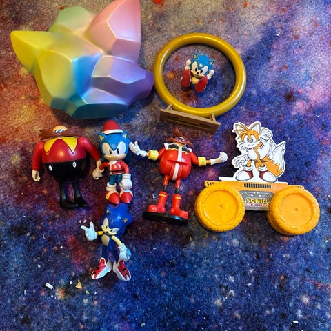 Karakterene Amy, Knuckles og Dr. Eggmann figurer selges samlet. Små samlefigurer som er gøy å ha