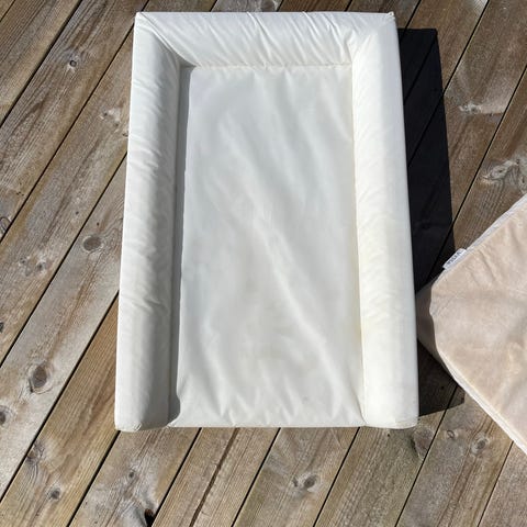 Sammenleggbart stellebord som kan settes oppå bord, badekar, sprinkelseng eller stå frittstående på gulv. Pent brukt, med avtagbar og vaskbar madrass. Nyvasket. Ny pris 1 999kr.