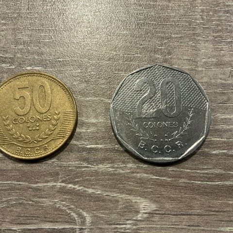 2 colones fra Costa Rica, sannsynligvis fra 1950- eller 1980-tallet basert på lignende design.