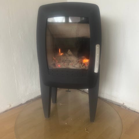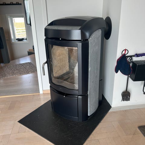 Denne fulgte med vårt nye hus, så vi har ikke kvittering. Pipa ble rehabilitert i 2023, så vi tror ovnen ble kjøpt ny da.