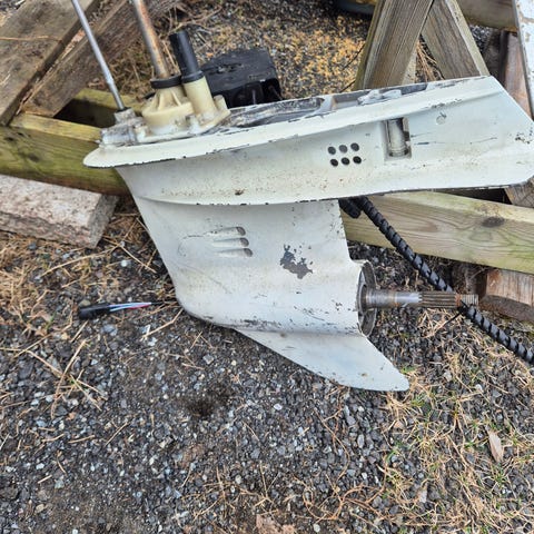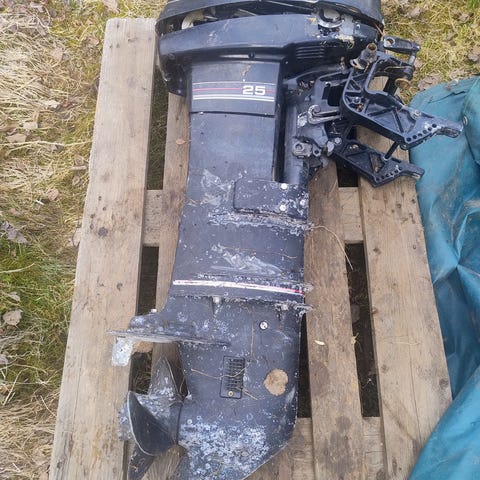 Påhengsmotor med propell. Motoren er montert på et langt stammehus og har mekanisk overføring ned til propellen. Egnet som fremdriftsenhet til mindre båt der det er behov for enkel motorløsning. Tekniske spesifikasjoner som effekt, slagvolum og drivstofftype er ikke oppgitt og bør avklares nærmere ved interesse.