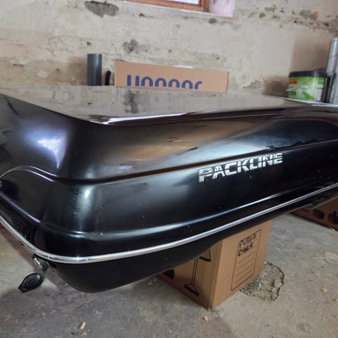 Packline takboks i svart farge. Godt, men pent brukt. Selges med t-fester. Takstativ følger ikke med. Må hentes. Pris kan diskuteres