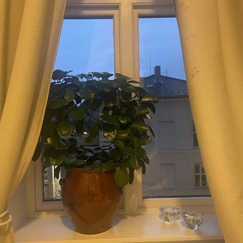 Har en liten sprekk på toppen, biten er kan limes. Ellers som ny