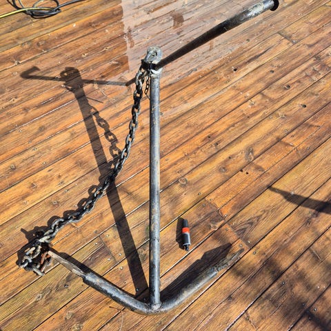 Tilstand: Flott naturlig patina (overflaterust). Rammen er hel og solid. Perfekt som restaureringsobjekt for en verktøysamler, eller som rustikk dekorasjon på hytte/vegg.