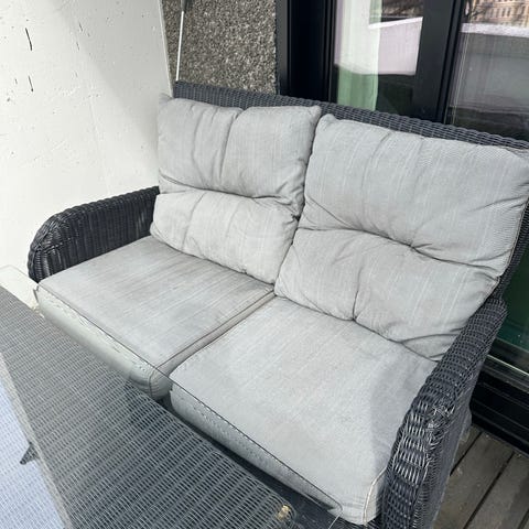 hagegruppe sofa og stoler svart metall med grå puter