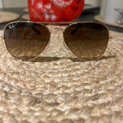 Ray-Ban aviator. Klassisk pilotfasong med tynne metallstenger og mørkebrune glass. Leveres med originalt Ray-Ban-etui.