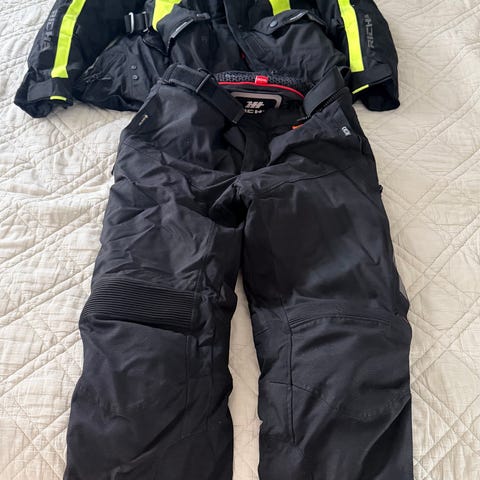 Rukka Gore-Tex Pro mc-dress i størrelse 42. Todelt kjøredress bestående av jakke og bukse som kan kobles sammen med glidelås.