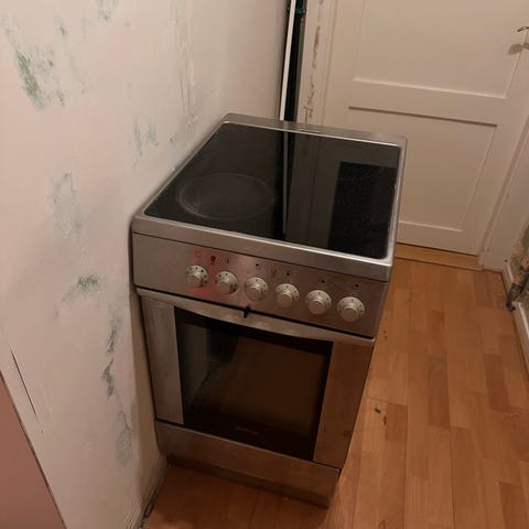 Siemens komfyr med platetopp og stekeovn. Komfyren har keramisk koketopp med flere kokeplater og frontplasserte brytere for regulering av varme på både topp og ovn. Stekeovnen har glassdør og innvendige riller for plassering av stekebrett og rister. Egner seg for vanlig matlaging og baking på kjøkken i bolig eller hybelkjøkken der det er behov for frittstående komfyr med keramisk topp.