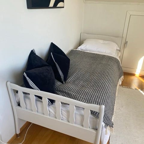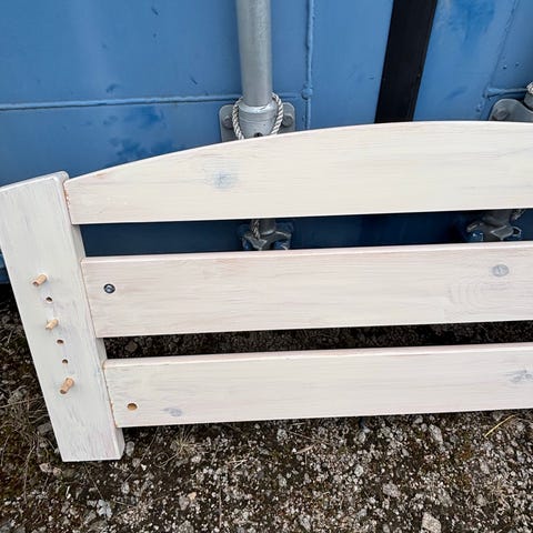 Hvit smijernsseng gis bort med madrass, men uten puter (på bildene)