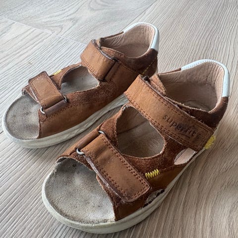 Superfit sandaler for barn i størrelse 26. Modellen er unisex og har to justerbare remmer med spenner over foten. Sandalene har formet fotseng og mønstret yttersåle for bedre grep. Egnet til hverdagsbruk i varme perioder, både inne og ute. Helt nye, kun prøvd på inne:)