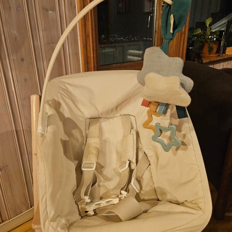 Pent brukt. Avtakbart trekk som kan vaskes. Følger med 2 stk bøyler til leke