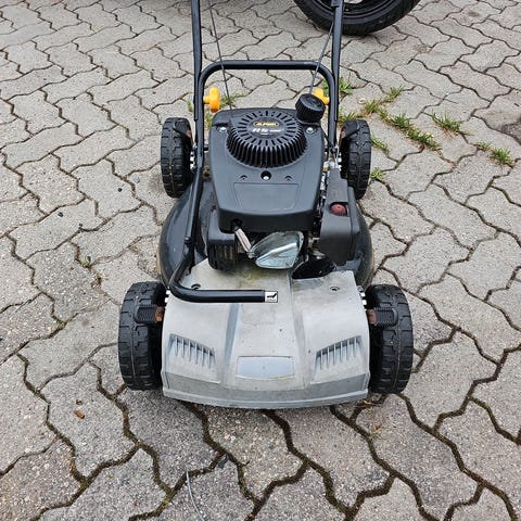 Solid og god klipper selges da vi har for mange klippere, denne er uten oppsamler og ikke driv på hjulene. Den er ganske bred så fin til og klippe større plener. Aldri hatt noe problem med den og lett og få start på.