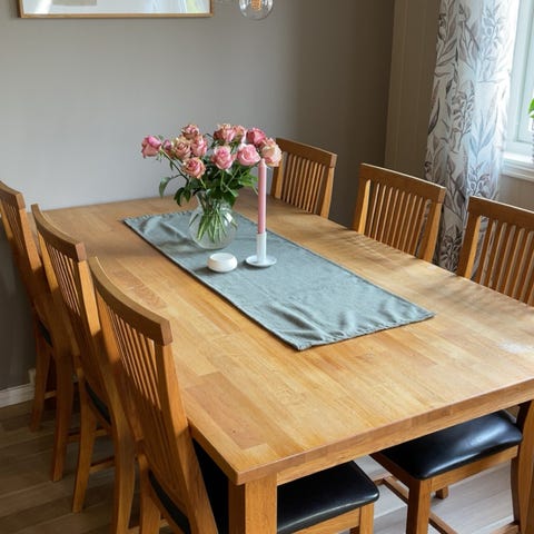 Ovalt Aannø spisebord mahognyfarvet. Plass til 10-12 stk .