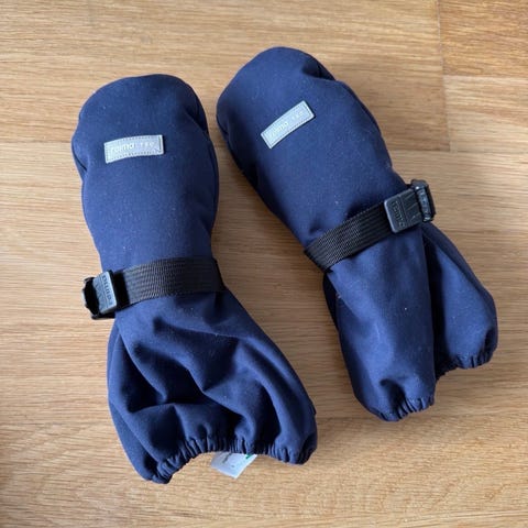 Polarn O. Pyret regnvotter til barn. Merket str 2 (1-2 år) men mener å huske at de passet lenger enn det.