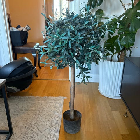 Kunstig oliventre i potte fra Kid, kjøpt for ca. 1 år siden. Veldig fin falsk plante som ser ekte ut. Høyde: 90 cm.