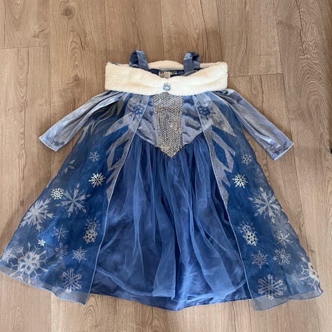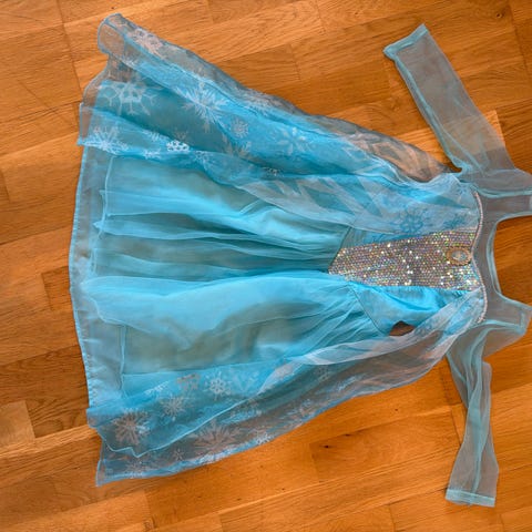 Kjolen er ganske lang så kan passe opp til str 116 mot at den blir kort i ermene😃