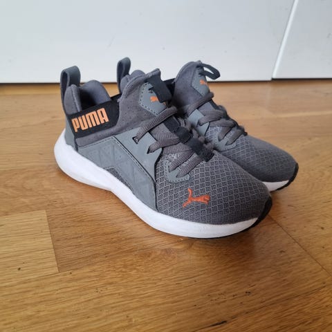 Puma joggesko for barn i størrelse 31. Modellen er unisex og kommer i hvit farge. Skoene har to borrelåsstropper over vristen for enkel av- og påtaking. Overdelen er i syntetisk materiale med perforeringer foran for ventilasjon. Yttersålen er i gummi med mønster for grep. Egnet som hverdagssko til skole og fritid.