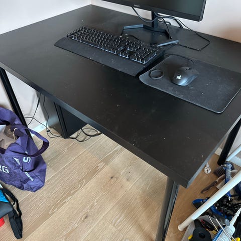 Skrivebord med tydelige bruksmerker. Må hentes