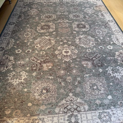 Er slitt i farger- dette er sånn det skal være. Var sånt nytt også