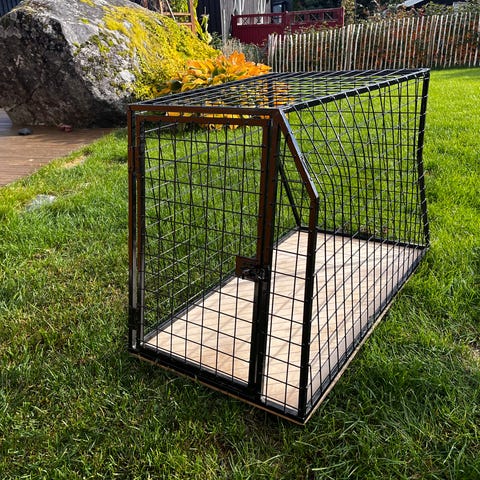 Romslig og sikkeret bur til to store hunder. Uttagbar midtplate.