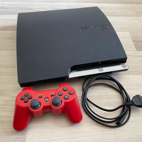 Konsollen er i fungerende stand og fungerer som den skal. Dette er en sjelden og ettertraktet rød utgave av PS3 Slim, som skiller seg ut fra standardmodellen.