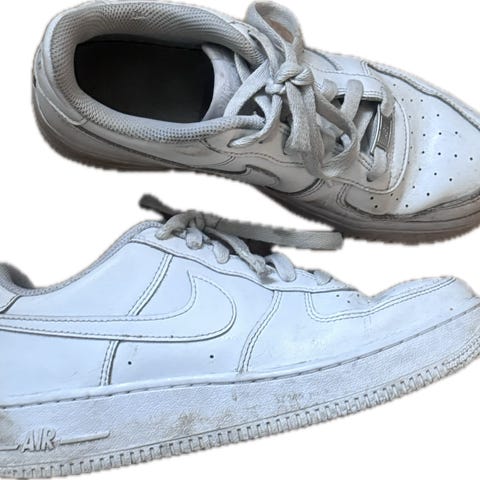 Nike Air Force 1 joggesko i størrelse 40. Modellen er i hvitt skinn med snøring og perforert tåparti for ventilasjon. Yttersåle i gummi med profil for grep. Klassisk lav modell som passer til hverdagsbruk. Leveres i original eske merket Nike Air. Brukt en gang