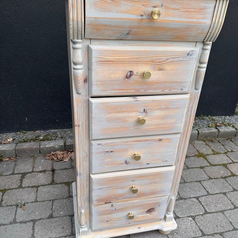 Stor kommode / benk i heltre, lakkert furu