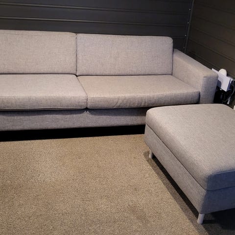 Sofaen må hentes og den er litt tung så man må være to som kan bære.