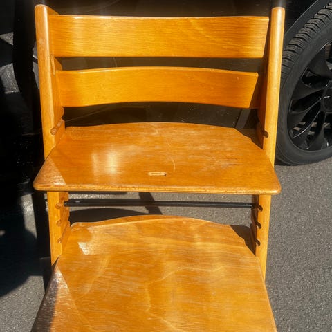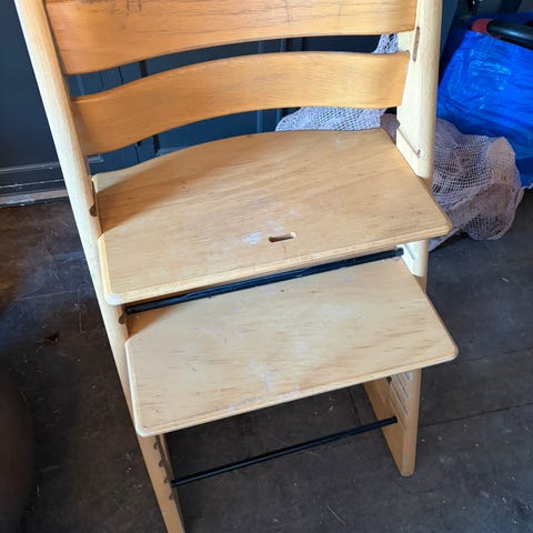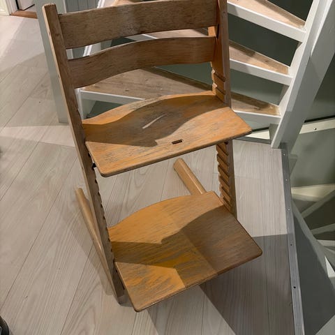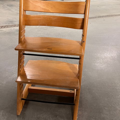 Brun, eldre tripp trapp. Masse stol igjen.