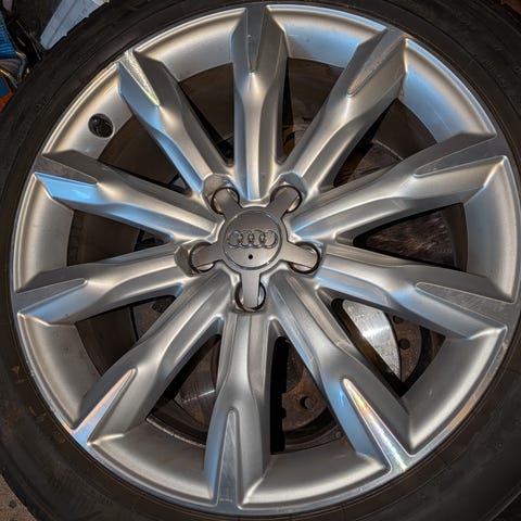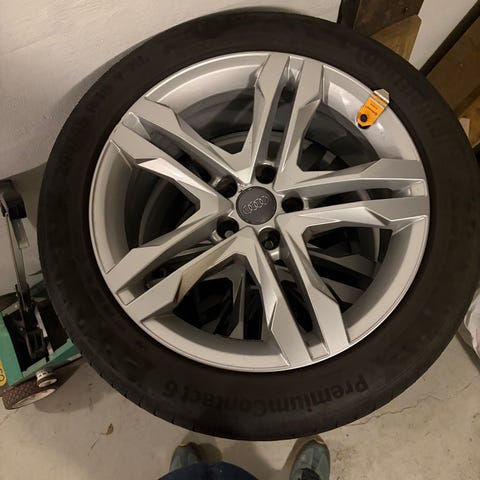 Selger ett sett med brukte Audi All-Road felger, 18". Dekka er noen år gamle men funker fortsatt. Vi har ikke brukt de de siste 3 åra da har de liggi lagra mørkt.
