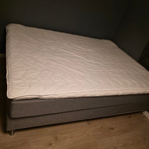 Svane Ekornes dobbeltseng 150x200 selges med overmadrass. Sengen er som ny. Sengen står på pene bein og støttebein medfølger. Veldig god og fin seng som selges rimelig.