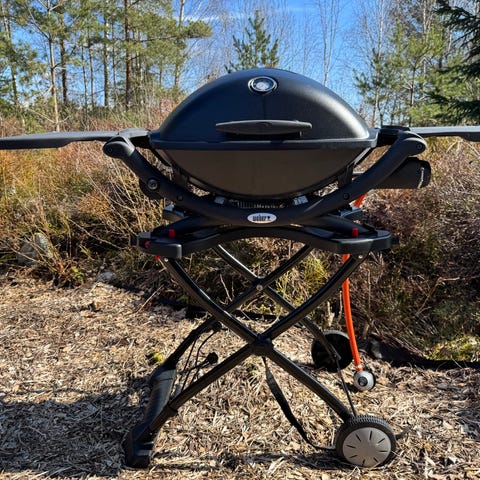 Weber Q 3200 gassgrill i svart utførelse. Grillen har lokk med innebygd termometer for kontroll av grilltemperaturen. Den står på stativ med hjul for enkel flytting og har sidebord for ekstra arbeidsflate samt uttrekkbar beholder under ett av sidebordene. Grillen drives av propangass (G30/G31) og har oppgitt effekt på 7,0 kW / 6,2 kW ved 30 mbar. Egnet for utendørs bruk på terrasse, balkong eller i hage.