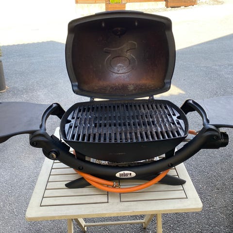 NB! Litt rust på selve grillen, men det kan nok børstes bort. Trenger også sannsynligvis en ny regulatror-slange.