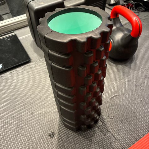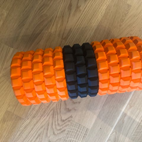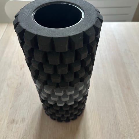 Foam roller massasjerulle med strukturert overflate i svart farge. Rullen har hard kjerne og ytre lag i skum for egenmassasje og muskelbehandling. Egnet til oppvarming, restitusjon og tøying av muskulatur, samt til stabilitets- og balanseøvelser. Kan brukes til blant annet rygg, ben og armer hjemme eller på treningssenter.