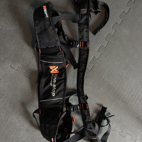 Non-stop Dogwear Freemotion sele for hund i størrelse 2. Selen er svart med blå detaljer og har justerbare stropper for tilpasning til hundens kropp. Modellen er utviklet for trekkaktiviteter som løping, ski og sykling, og gir hunden god bevegelsesfrihet. Reflekterende detaljer fra 3M Scotchlite gir bedre synlighet i mørket. Passer til hunder med halsomkrets ca. 26–31 cm, avhengig av hundens kroppsfasong og innstilling av selens stropper.