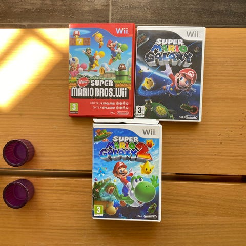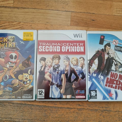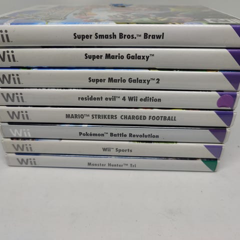 Nintendo Wii spillpakke med fem spill: Wii Fit Plus, Crash, Epic Mickey, WarioWare: Smooth Moves og Rayman Raving Rabbids. Spillene er på fysiske plater i standard Wii-esker. Passer til Nintendo Wii-konsoll og kan brukes til både enkelspiller- og flerspillermodus der spillene støtter dette. Inneholder ulike sjangre som partyspill, plattform og eventyrspill, egnet for flere aldersgrupper i henhold til aldersmerking på omslagene.