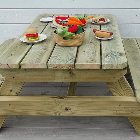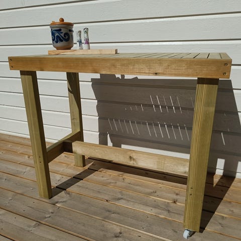 Solid og praktisk avlastningsbord laget i impregnert materiale (28x120 mm), med skjult skruing og kraftig utførelse.