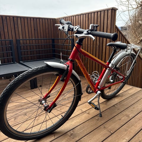 Sykkelen har noen bruksmerker, lite hull i sete, noen riper, gir og bremse vaiere bør justeres.