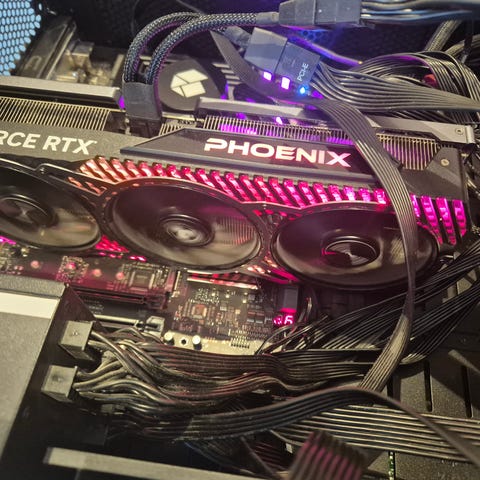 MSI GeForce RTX 4070 Ventus 2X E 12G OC skjermkort med 12 GB GDDR6X-minne. Modellen har to kjølevifter og PCIe-grensesnitt. Kortet er utstyrt med flere skjermutganger, inkludert DisplayPort og HDMI, for tilkobling av flere skjermer. Egner seg til stasjonære PC-er som krever et dedikert grafikkort for grafikkintensive oppgaver og spilling.