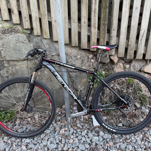 Hard rock terrengsykkel for herre med XL ramme og 29" hjul. Sykkelen har hardtail-ramme og dempegaffel foran. Utstyrt med felgbremser foran og bak samt girsystem med flere gir bak. Rammen er rød med lyse detaljer. Det er synlig slitasje og avskalling i lakken enkelte steder på rammen. Egner seg til hverdagssykling og turer på grus og lett terreng for en høyere rytter som passer XL ramme og 29" hjulstørrelse.