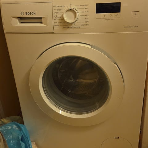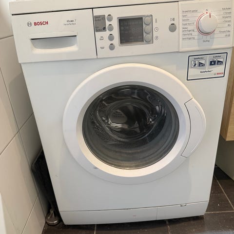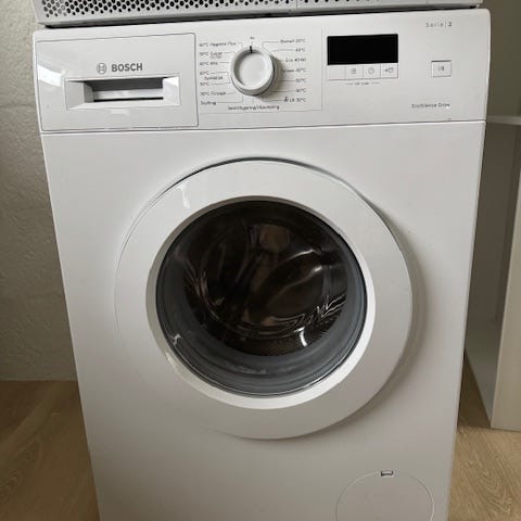 Selger en Bosch vaskemaskin pga flytting. Den fungerer helt fint, men vi trenger den ikke da der er hvitevarer dit vi flytter.