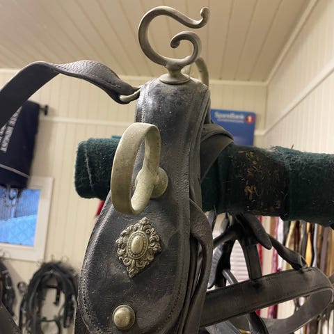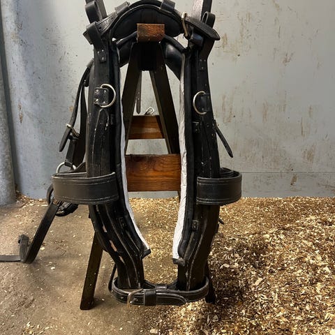 Bogtresele/lettsele. Ikke baksele. Bør nok vaskes og smøres, med godt stell/vedlikehold varer den i mange år enda. Brukt på kaldblods/fjording. 1 ekstra halereim og 2 lærreimer følger med.