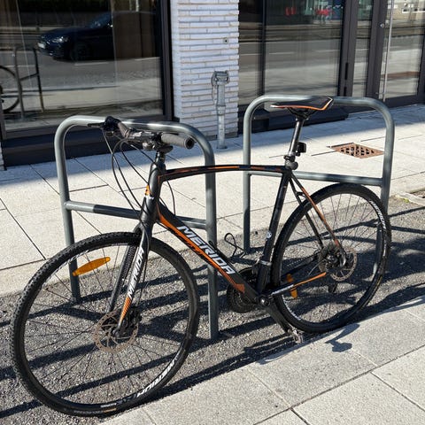 Rammen er merket XXL og passer høye syklister. Hjulstørrelsen er 28"/700c, som gir god rulleeffekt på asfalt og grus. Sykkelen har skivebremser foran og bak for jevn og kontrollert bremsing under ulike forhold.
