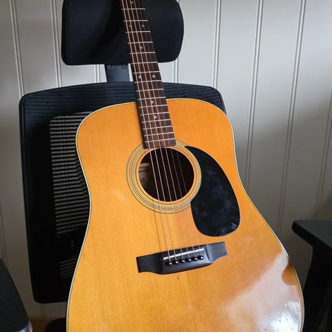 Har noen bruksmerker og en litt større lakkskade bakpå kroppen (se bilde), men ingenting som påvirker lyd eller spillbarhet.