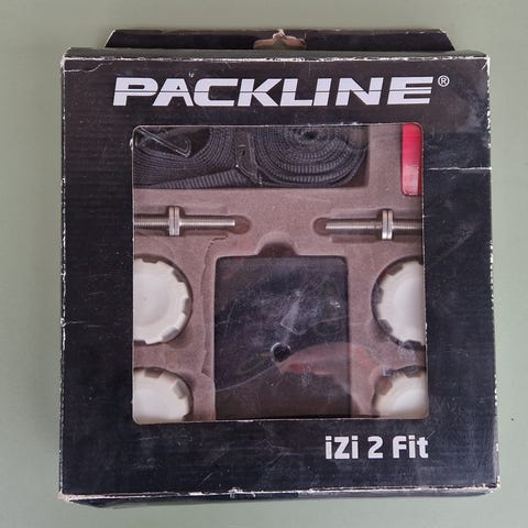 Packline Izt 2 Connect takboksfester med stropper. Sett med fire festebraketter for montering av Packline takboks på biltakstativ. Inneholder festeklosser og tilhørende stropper med Packline-logo. Egnet for bruk sammen med kompatible Packline takbokser og takstativer etter produsentens anvisninger.