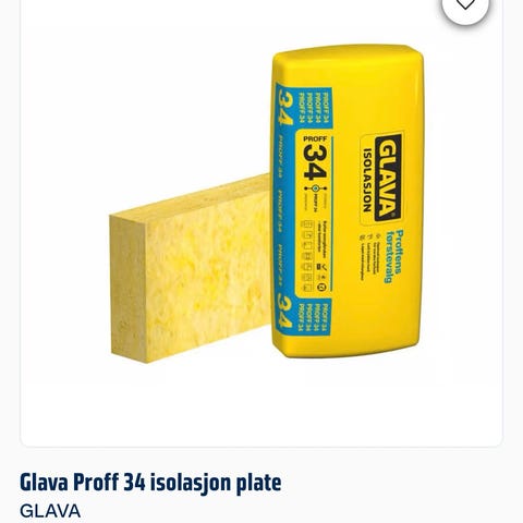Ca 7 kvm. Glava Proff 34 isolasjon. Mineralullplate egnet til varmeisolering av konstruksjoner i bygg, som vegger, tak og gulv. Produktet leveres som plate i komprimert pakke. Passer til bruk i tre- og stålstenderverk samt andre konstruksjoner der mineralullisolasjon er aktuelt.