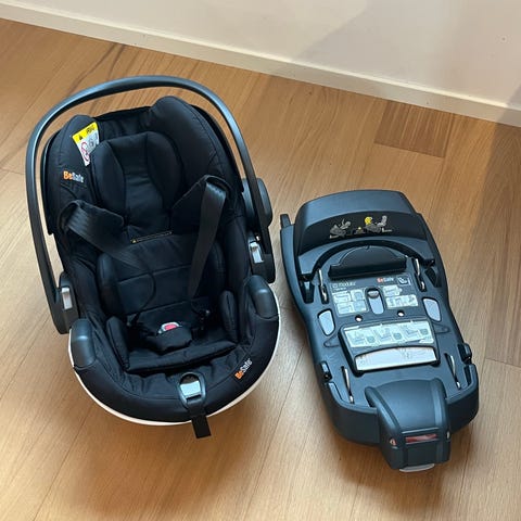 BeSafe bilsete til baby, gruppe 0+ for barn 0–13 kg. Kjøpt våren 2022 og brukt til to barn i 2022 og 2025. Pent brukt. Leverandøren BeSafe anbefaler at babybilstoler brukes i maks 5-7 år fra start. Det er altså mye bruk igjen i denne stolen.